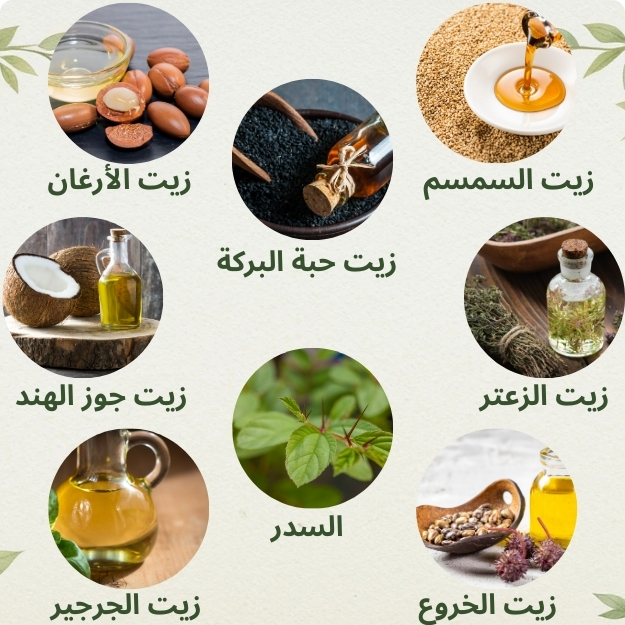 ♦ زيت السمسم وجوز الهند : ترطيب مرن يخفف الجفاف بدون ما يثقل الشعر