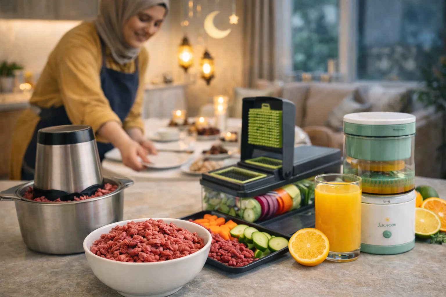 تحضيرات رمضان تسرق وقتك وتزيد تعبك.تقطيع… فرم… وتجهيز يومي بلا توقف.لهذا نقدم لكِ باقة تجهيزات رمضان : 3 أجهزة في باقة واحدة